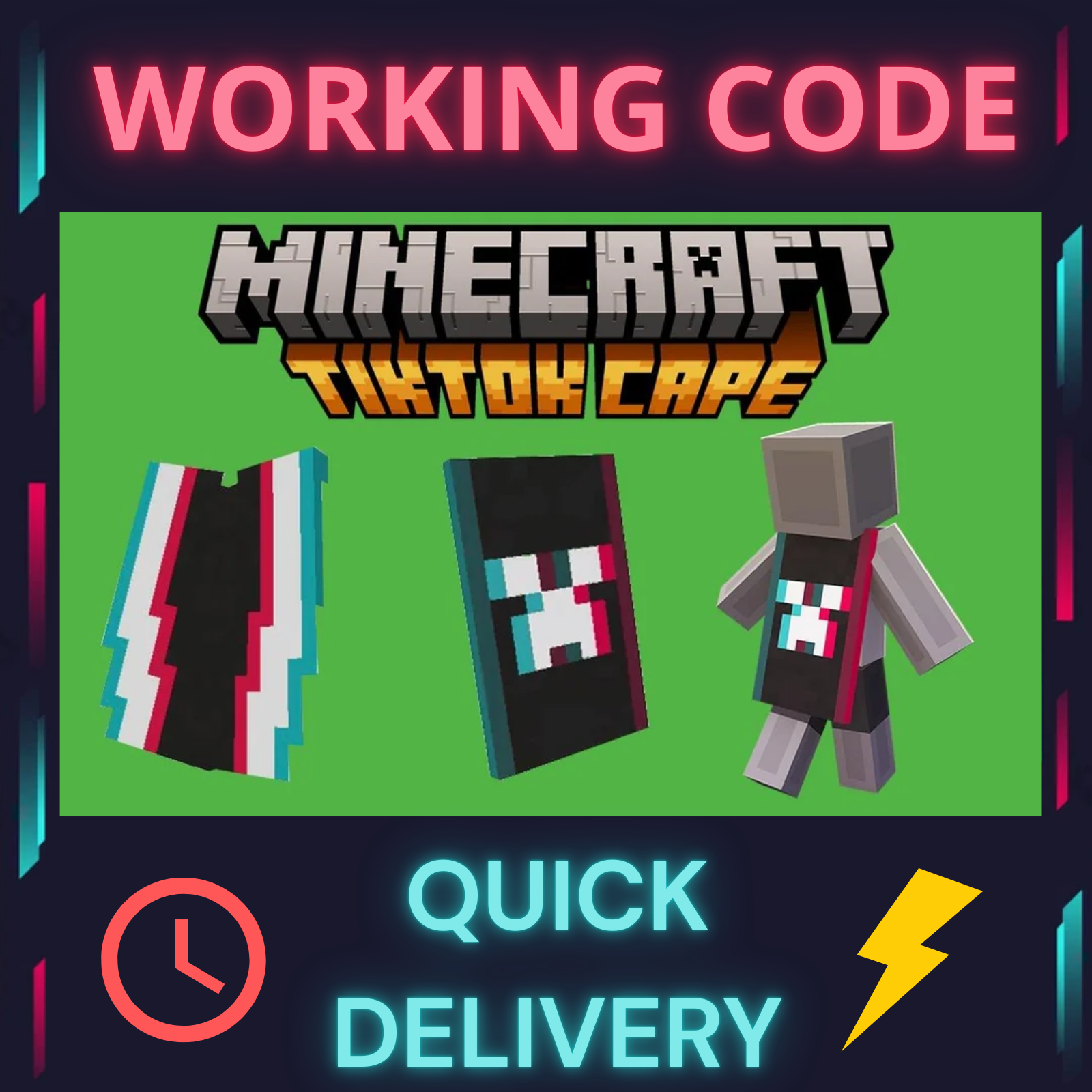 2024 Minecraft TikTok Cape Code [RARE] 🚨 Bedrock & Java 🎮 Fast Delivery ⏳⚡