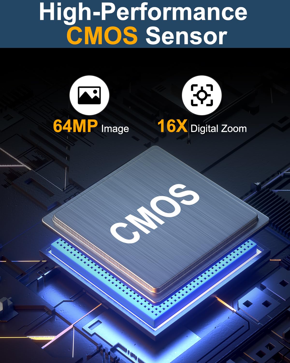 - UHD 4K & 64MP Camera - Revel in stunning 4K video clarity and take professional-grade photographs with the 64MP digital camera. Every moment is immortalised with perfect precision. The 13 million CMOS sensor ensures that no detail is missed, whether you're capturing a breathtaking landscape or a family celebration. This is the pocket digital camera that enhances your memories.