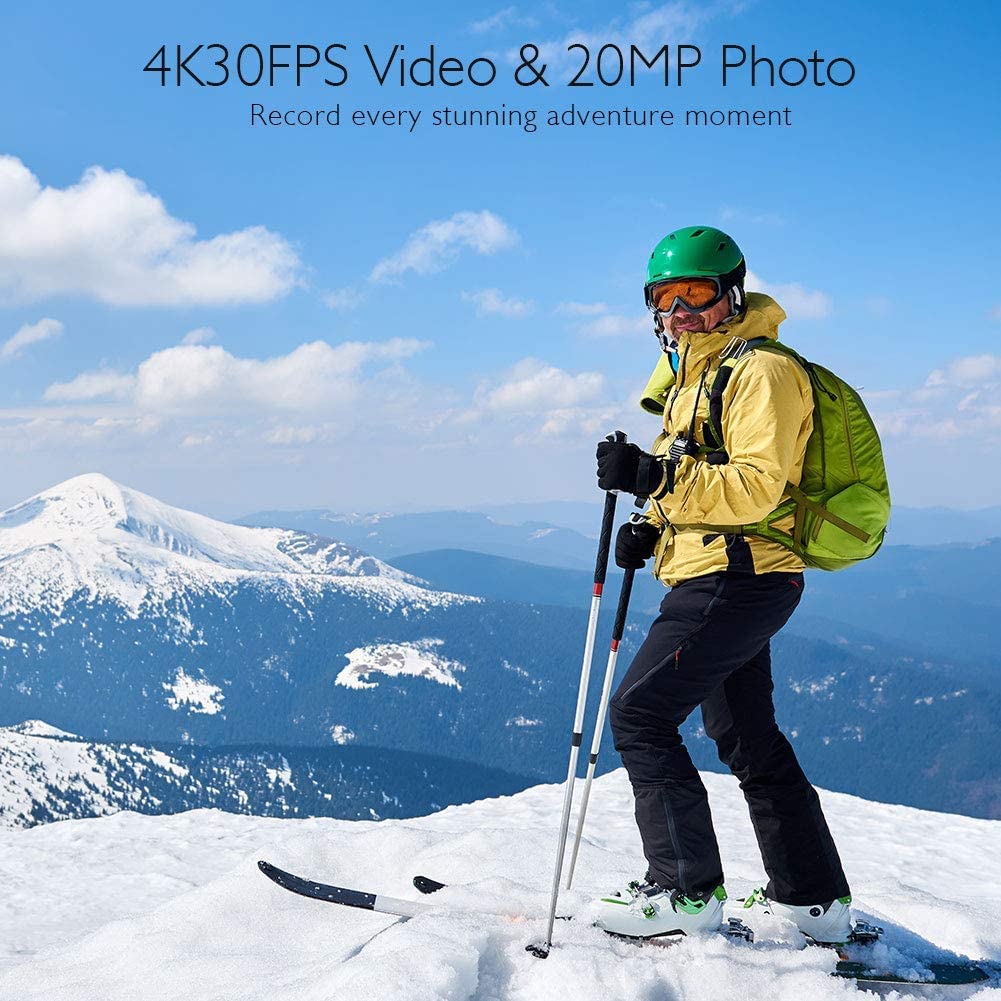 - Native 4K Action Camera: The action camera features 4K/30FPS video and 20MP photo to bring in the high-quality adventure recording. Built-in 2-inch LCD touch screen helps you preview and operate the camera more easily.