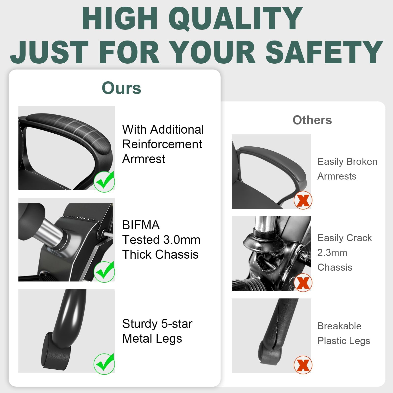 - Heavy-duty and sturdy components: Equipped with 360° PU silent casters and a durable metal base that has passed a 1,136 kg static load test. The SGS-certified 3-level gas lift has also passed BIFMA testing.