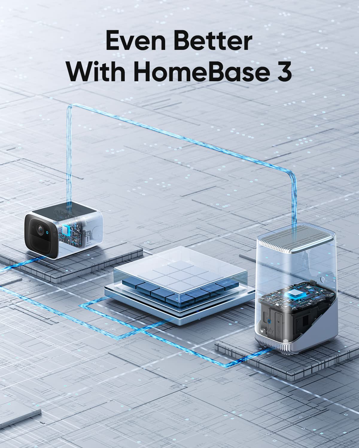 - Human Detection: AI alerts* you of anyone on your property, whether family, a courier, or a stranger. Powerful on its own, enhanced by HomeBase S380 adding individual facial recognition.