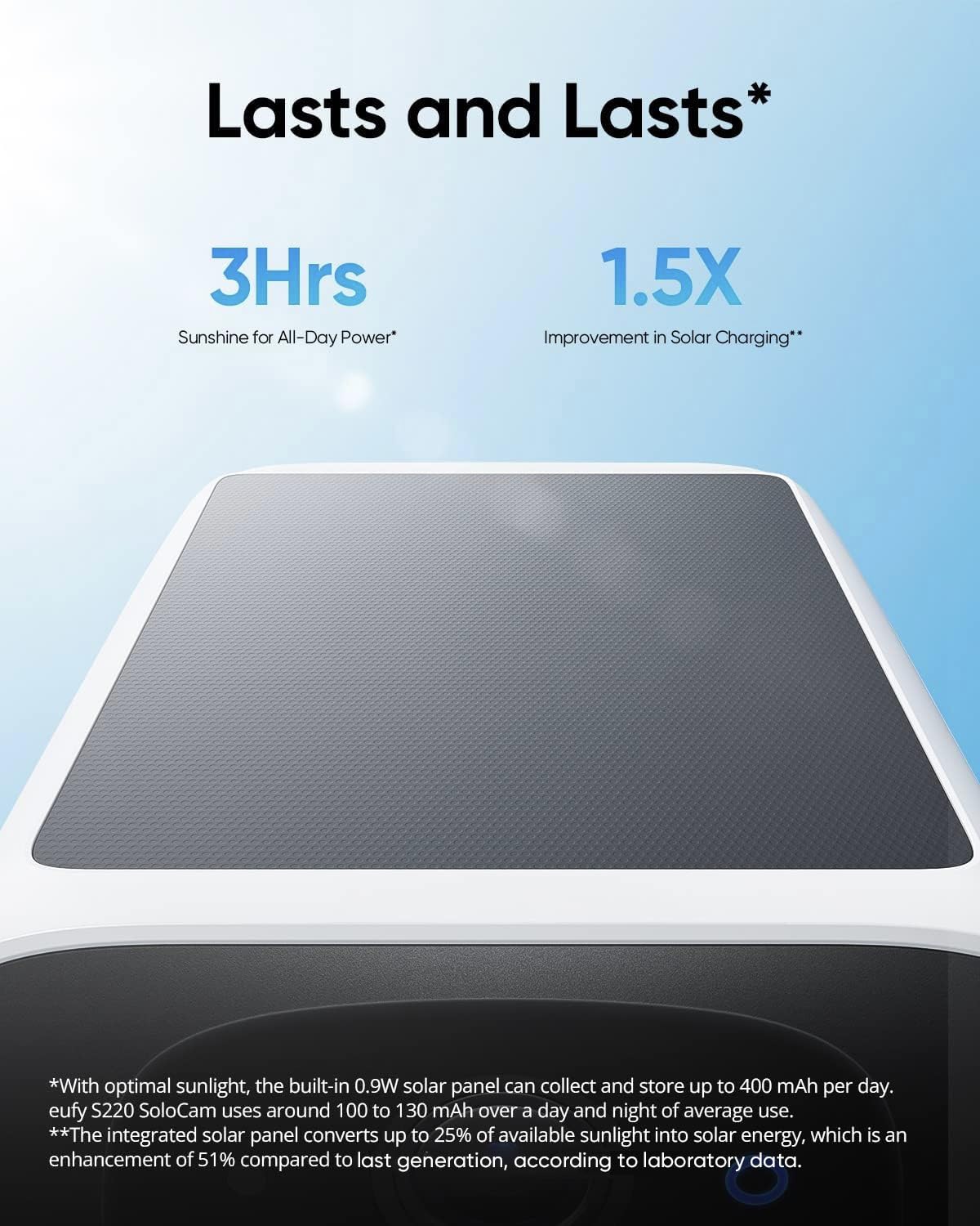 eufy Security SoloCam S220 Solar Security Camera Outdoor Wireless, Continuous Power, 2K Resolution Home Security Camera, 2.4 GHz Wi-Fi, No Monthly Fee, HomeBase S380 Compatible