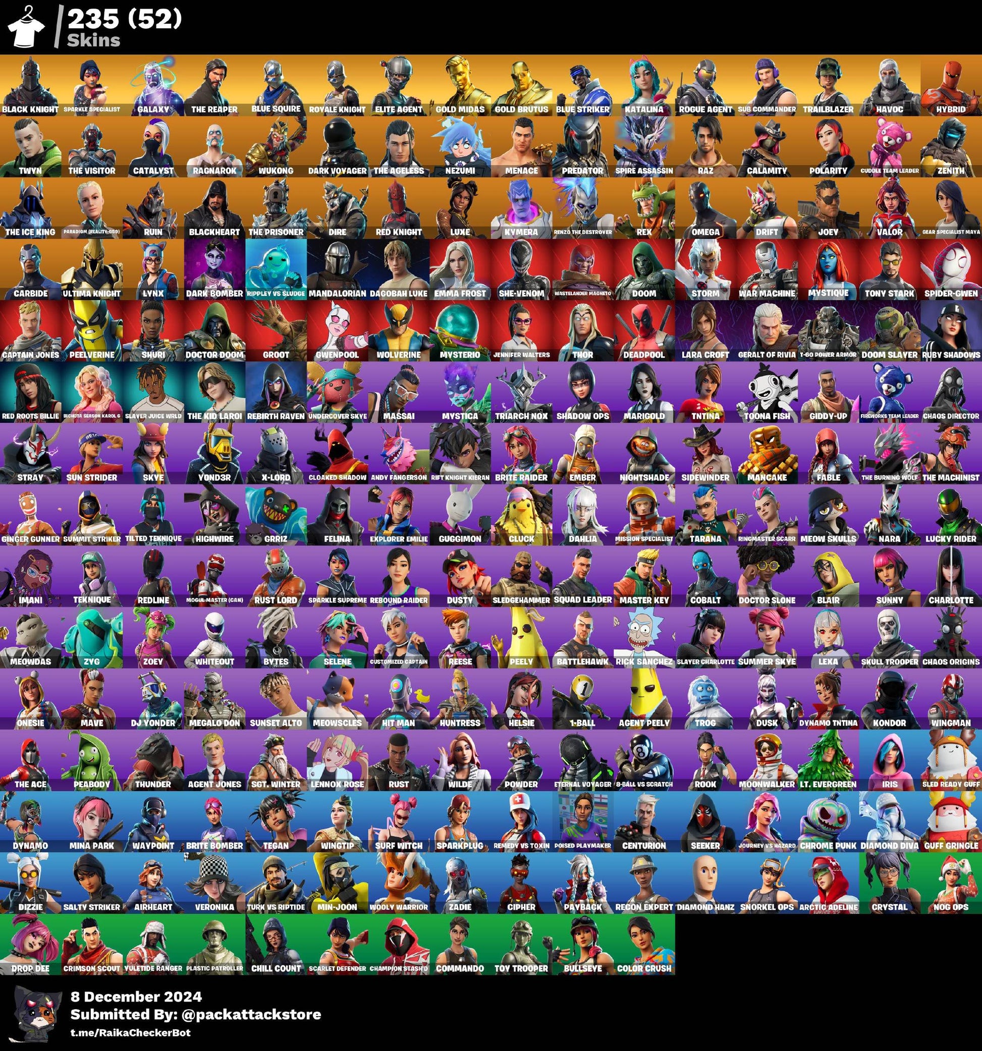 - 235 skins, 154 gliders, 221 backpacks & 188 Pickaxes