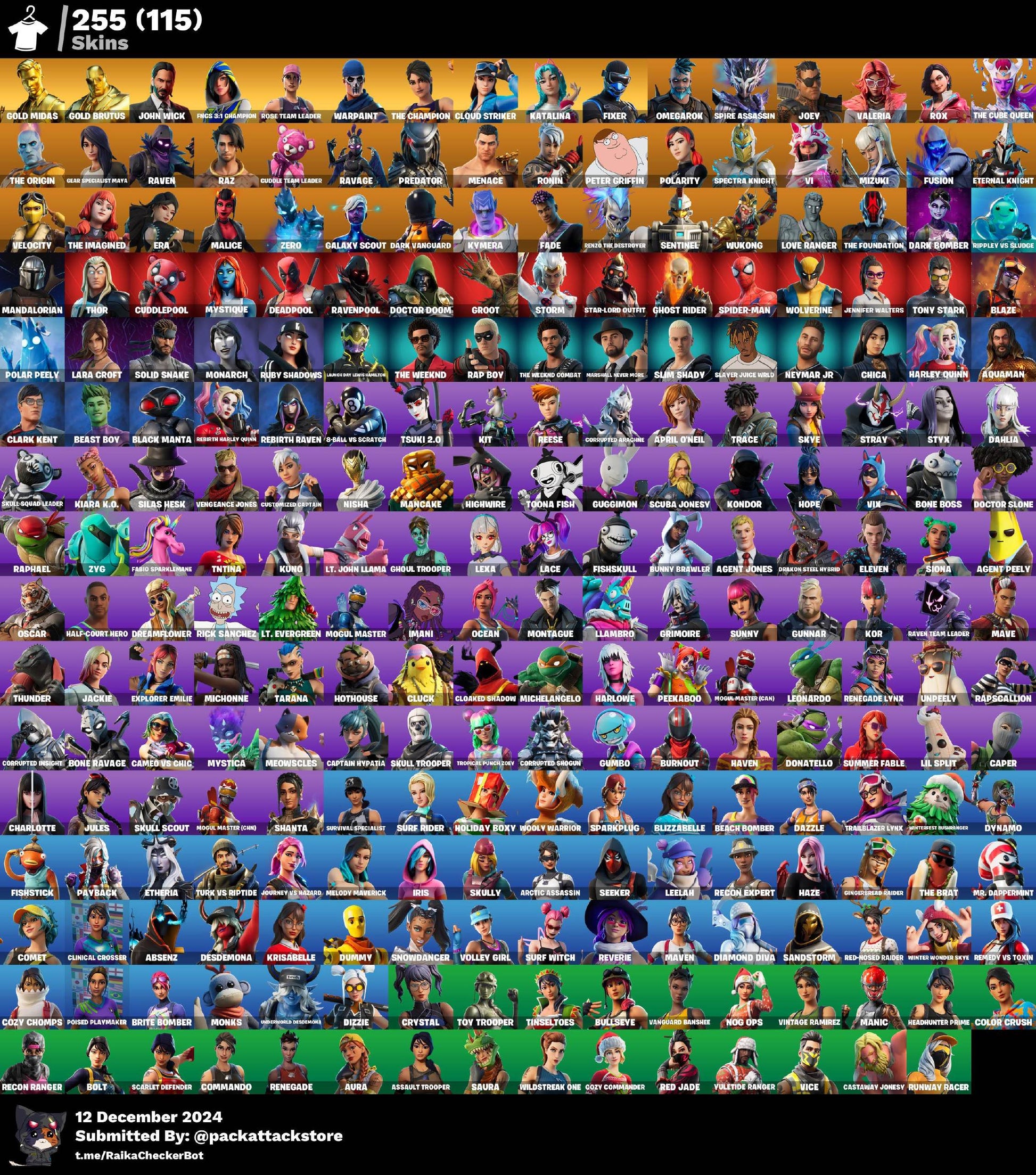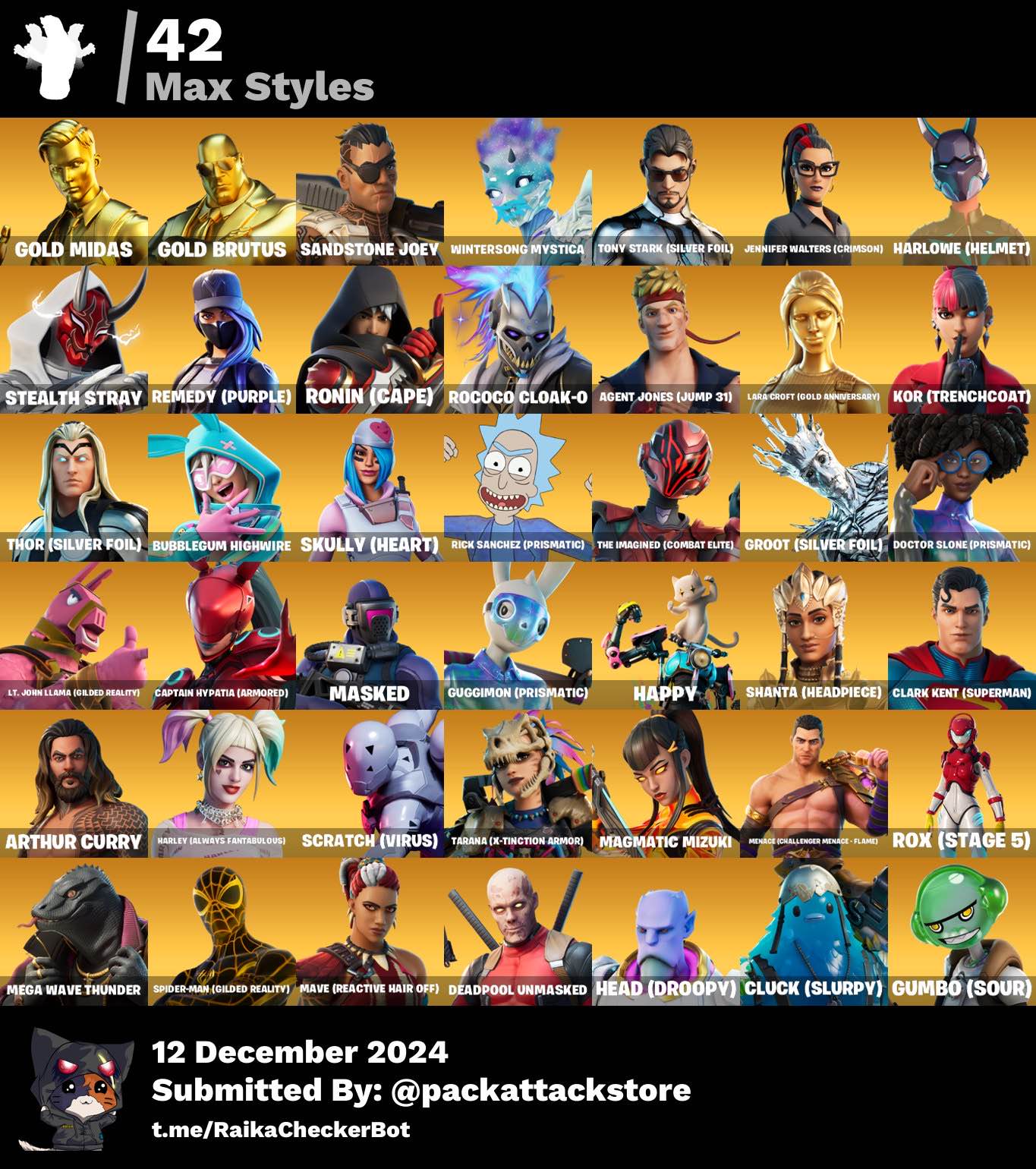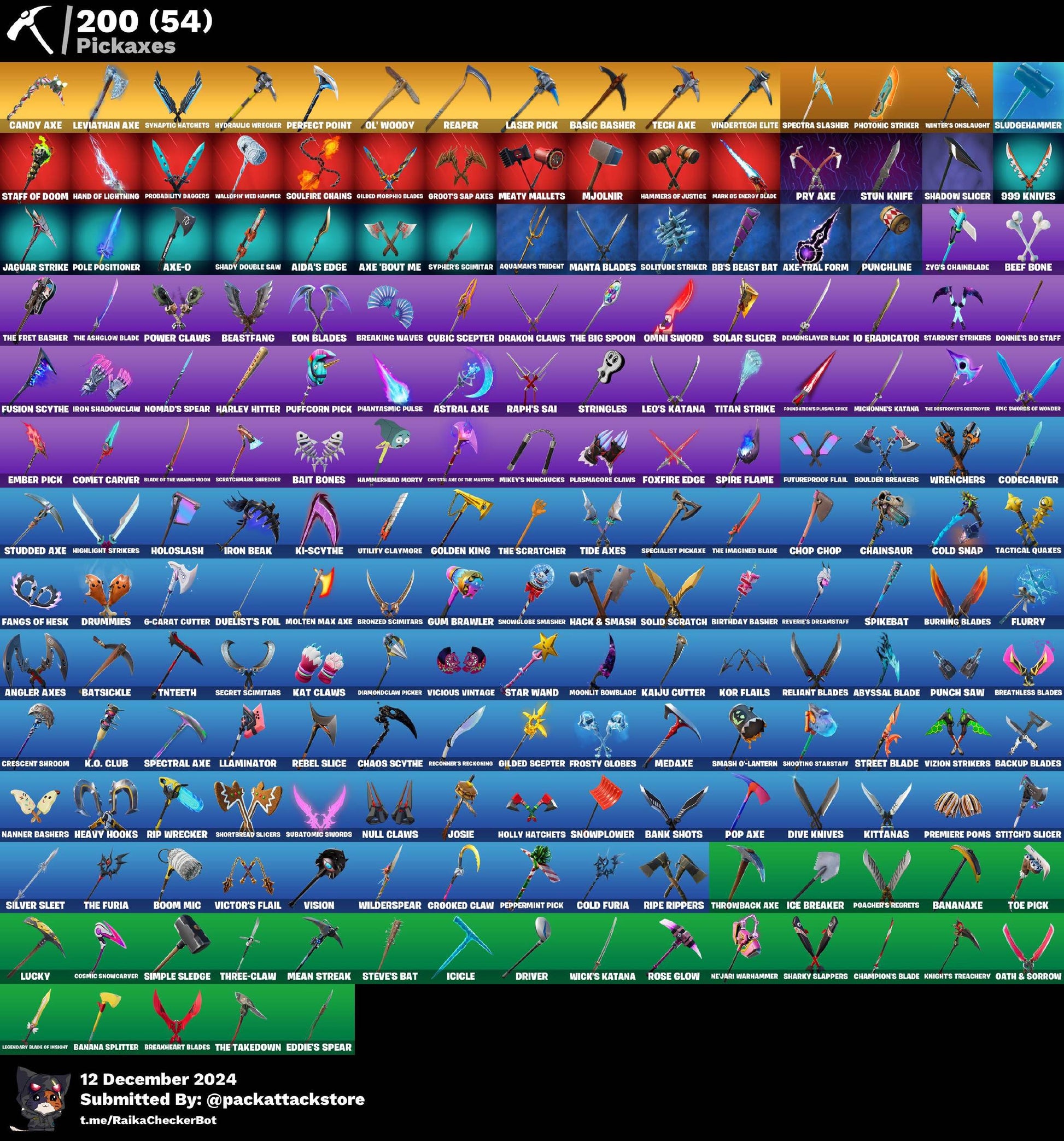 - 255 skins, 122 gliders, 234 backpacks & 200 Pickaxes
