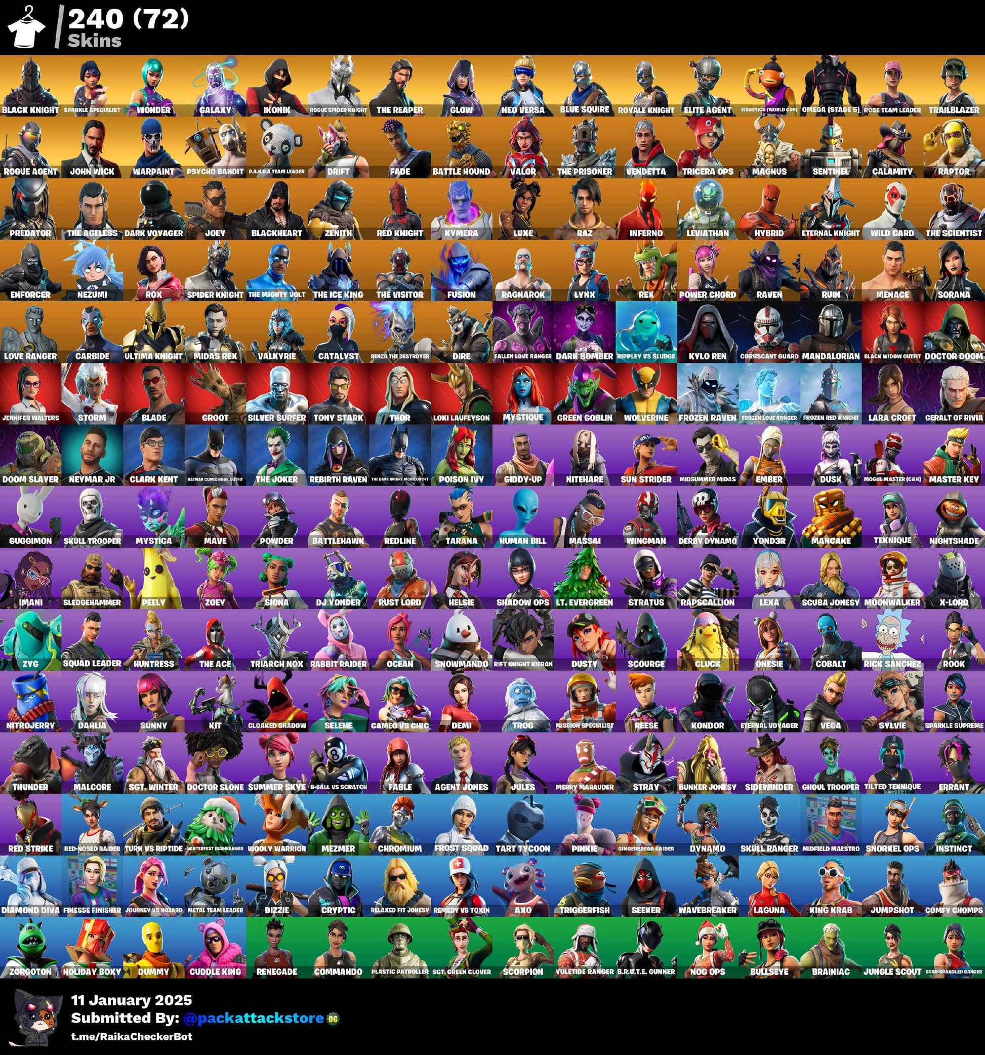 - 240 skins, 152 gliders, 214 backpacks & 161 Pickaxes