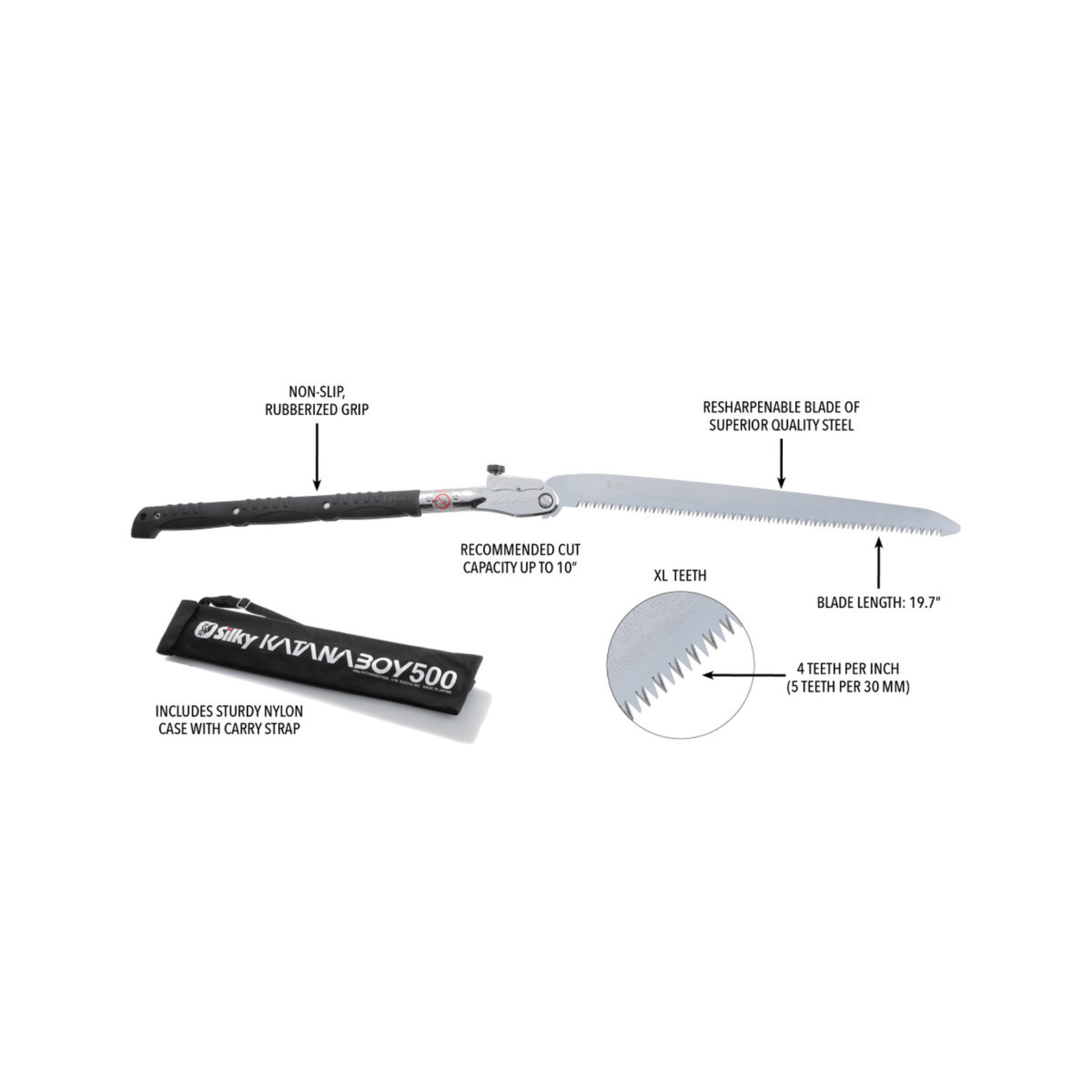 Conquer large timber with the Silky Katanaboy 500. This 20" professional folding saw delivers chainsaw-like power, unmatched reach, and effortless cutting. [Heavy-Duty, Made in Japan]