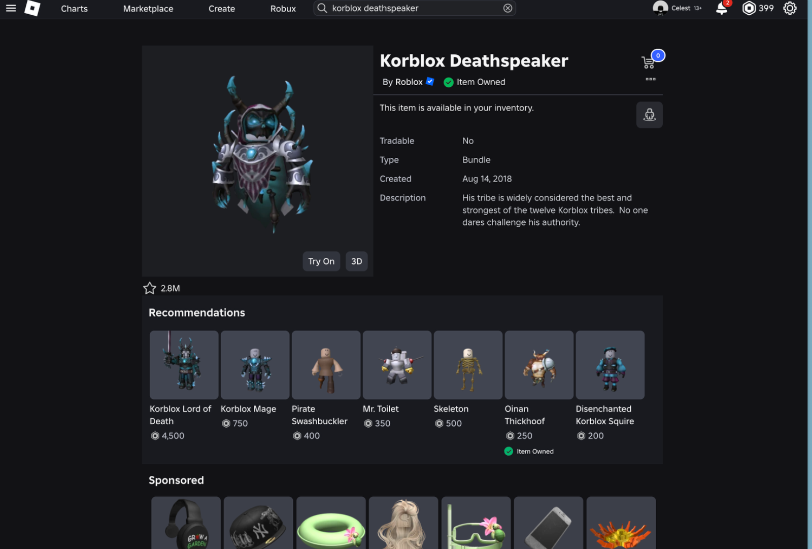 You will be receiving a korblox account that has a summary (Robux spent on the account) value of over 100k (1000$) The account has played many games such as grow a garden, MM2, blade ball, and many more games.