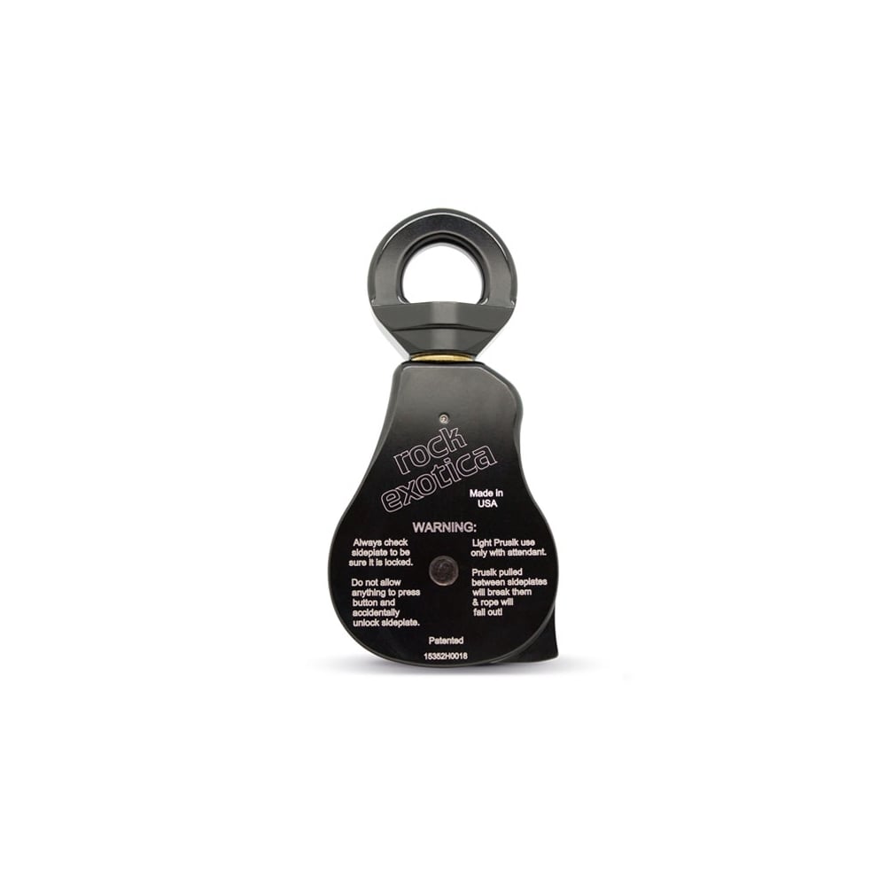 The Rock Exotica Omni 2.6" brings heavy duty rigging to the Omni family with a Working Load Limit (WLL) of 20kN. In addition to the large 2.6" sheave, the P55 features a prussic minding sideplate, and push-button access to open the sideplate to install rope.