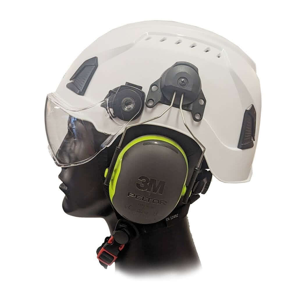 The Sovos Kit includes the White Sovos Helmet, you can then choose a Helmet Cover if required which sits over the helmet. There is a choice of face protection available from a full mesh visor to either a clear or tinted half visor. Ear defenders you have the option of the Peltor X4 ear defenders or either the STIHL Advance Proccoms.